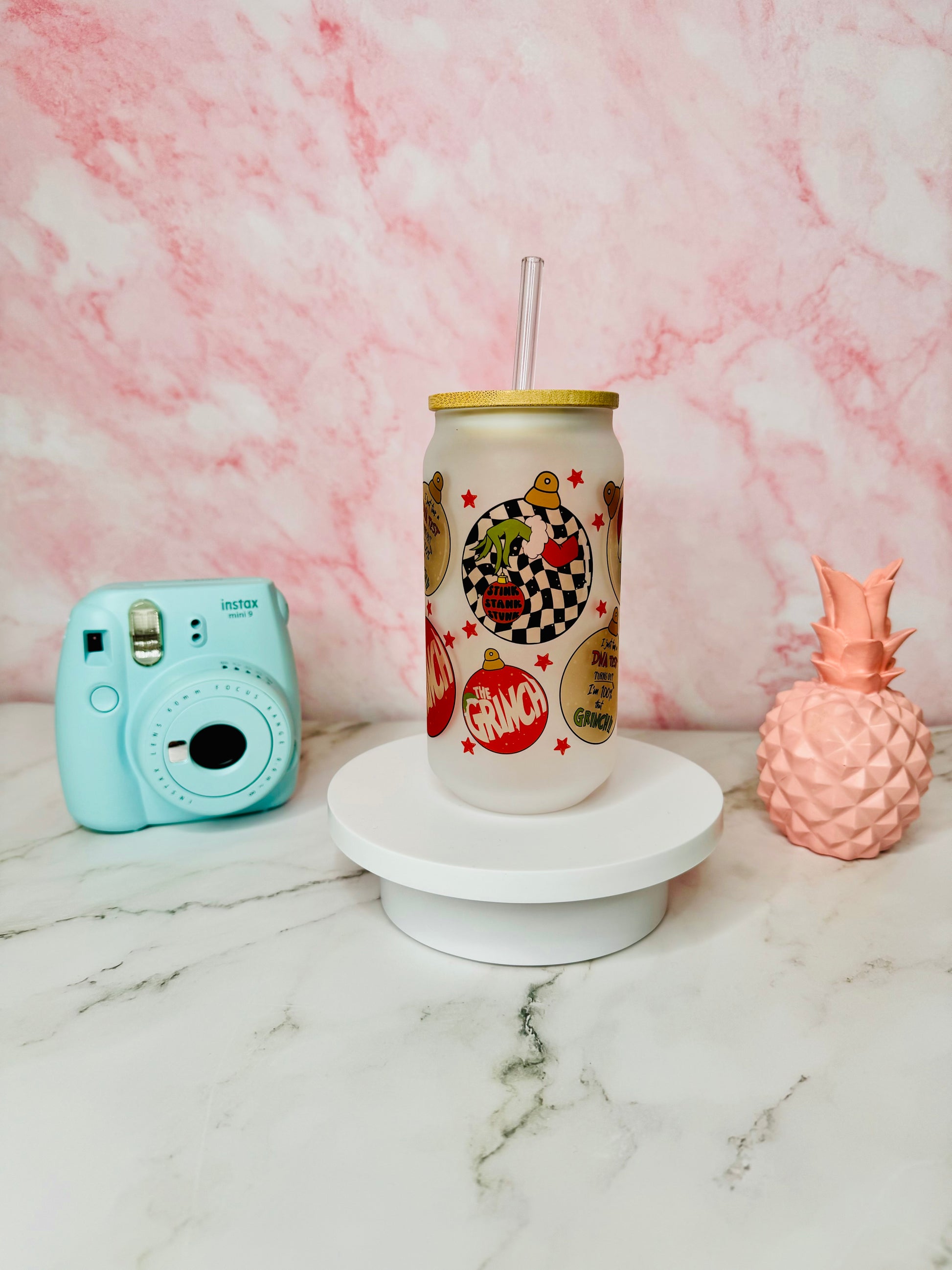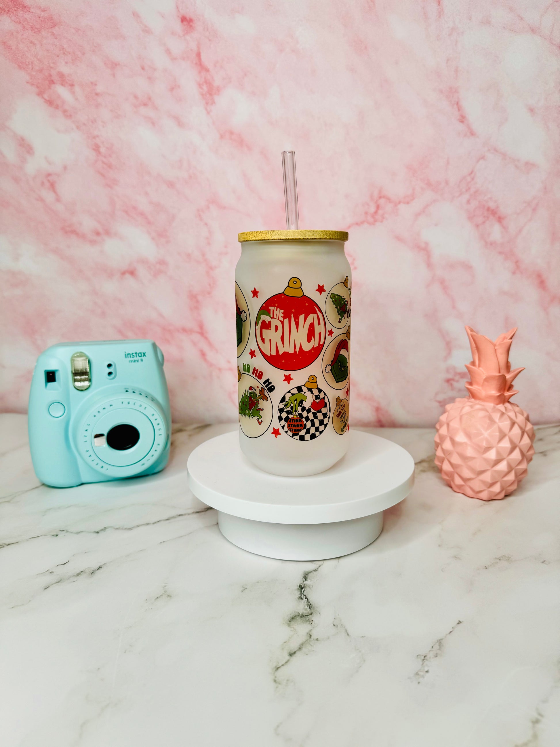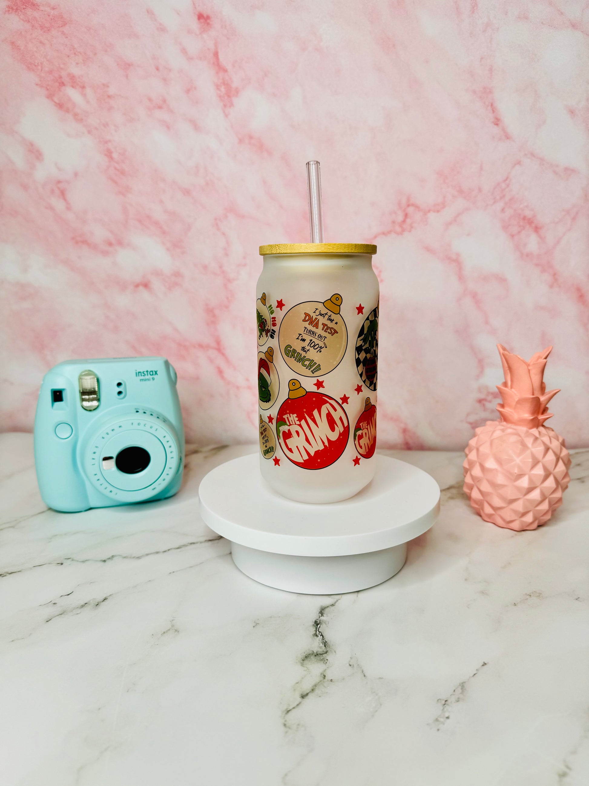 * This can-style glass cup is decorated with a cute Grinchmas Ornaments. It is perfect for cold beverages like iced coffee, beer, soda, cocktails and other refreshers. Great gifts for friends, family, coworkers, and yourself!